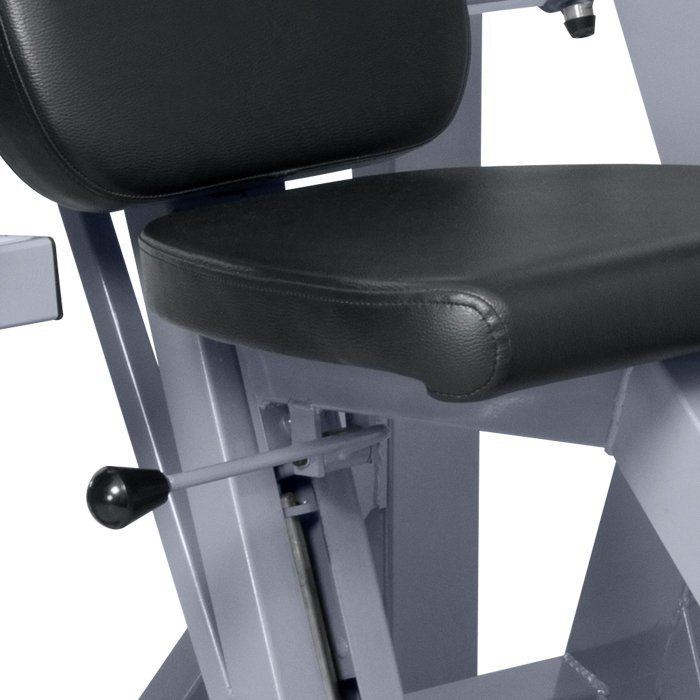 With this great piece of equipment, a user can achieve their perfect abdominal region with the help of the only true and fully functional Abdominal Crunch Machine. This device uses a combination of Upper as well as lower movement of the arms in order to get the most effective abdominal crunch possible. With the use of Cam and self-adjusting handle grip user can achieve maximum contraction while performing the complete range of motion. Cushion pad for elbow support. Hydraulic seat adjustment. Roller support to lock body in place. Kevlar belt drive Weight Stack 115kg with 3kg increment.