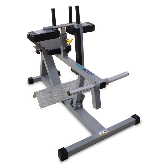 Large 5mm Aluminium checker plate is anodised for long lasting finish. Curved foot pad improves comfort and full extension of calves muscles. Rotating Thigh pads adjustment for variable height and range of motion. 2 angular hard chromed plate horns can hold enough weights. Assembly is fitted on pedestal bearings making it a smooth workout.